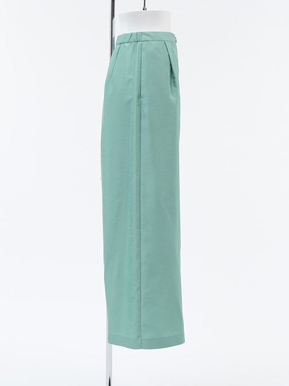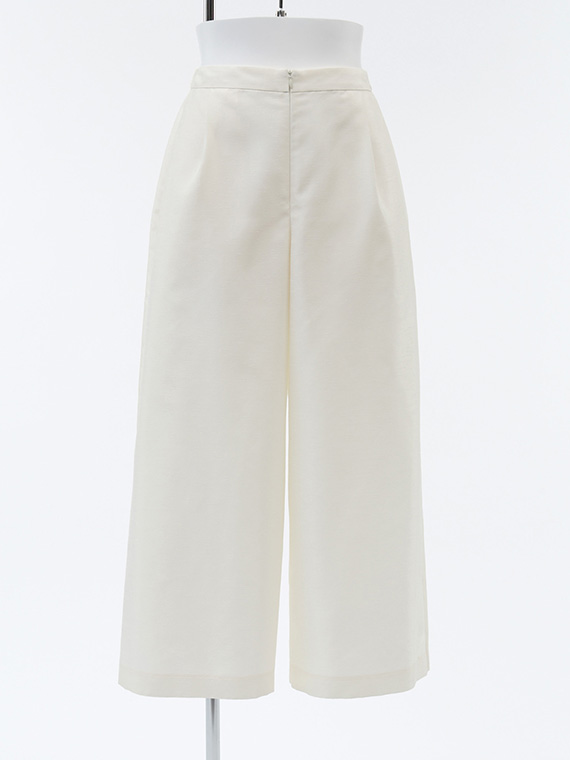 両脇には便利なポケットを付け、実用性もばっちり。生地のハリ感を活かしたワイドな裾幅が、歩くたびにドラマチックな揺れを演出し、立ち姿までも格上げしてくれます。