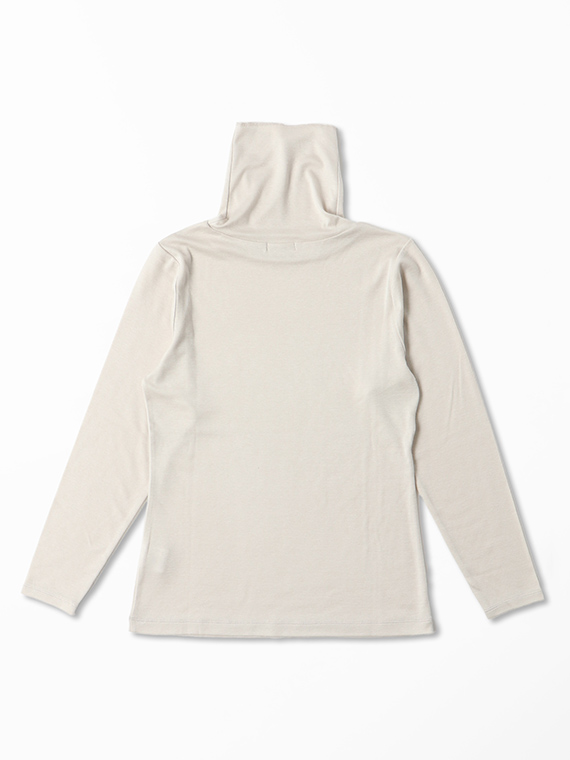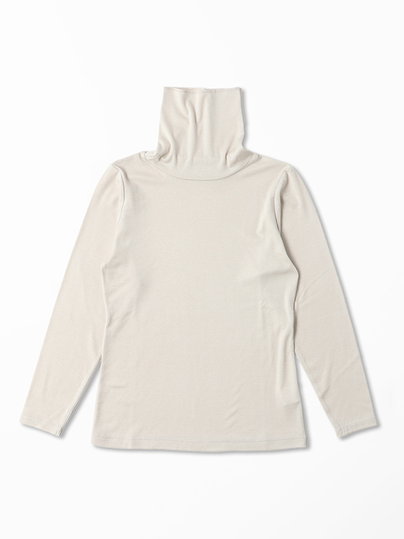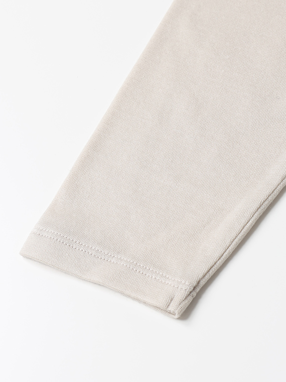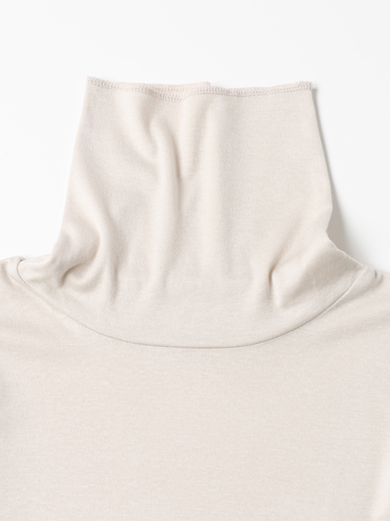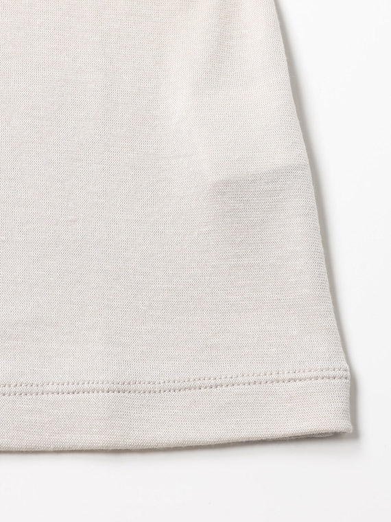 肌あたりが良く、ストレッチ性がありながらも柔らかなふくらみ感のあるハーフミラノリブ素材を使用し、インナーっぽいぺったりした感じを抑えました。