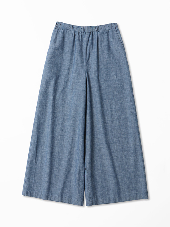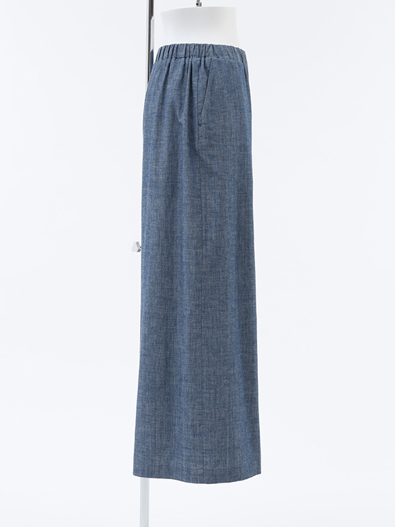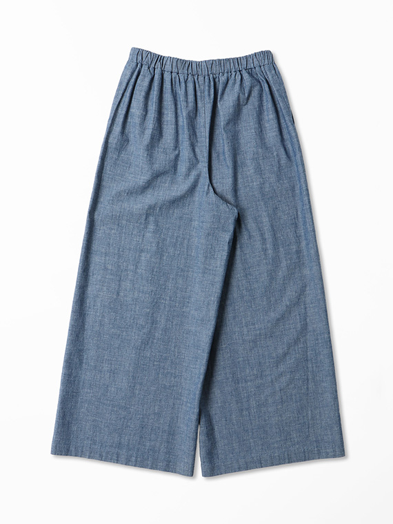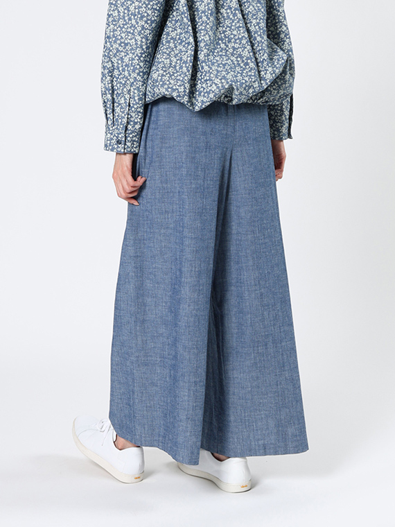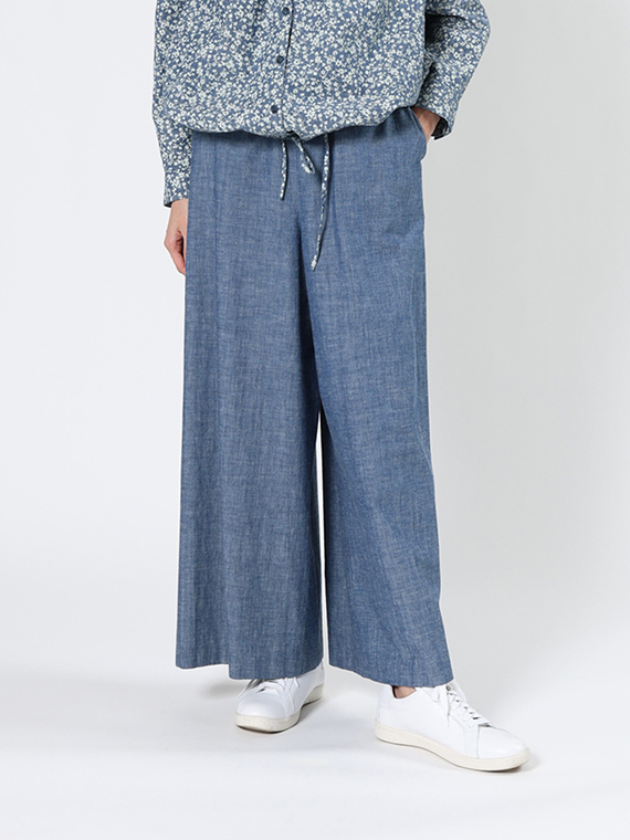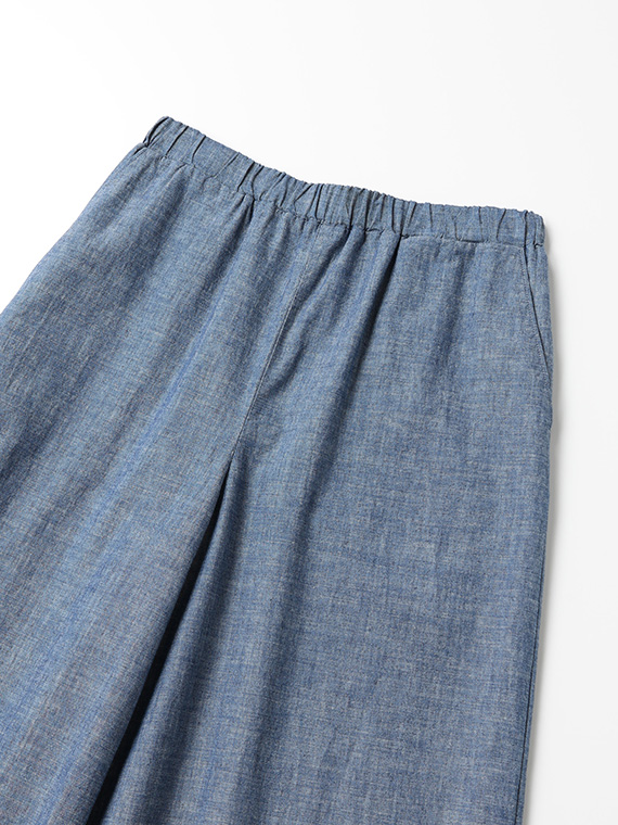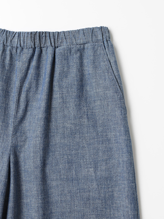 コットン100%のライトオンスデニムを使用しており、デニムとは思えないほどの軽やかさと、シャンブレー調の奥行きのある表情が特徴です。