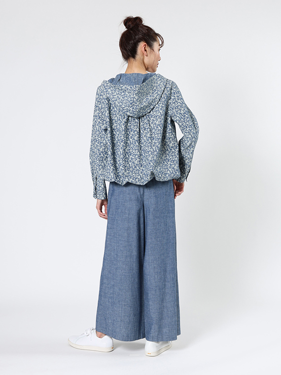 シャンブレー デニム プチフラワー プリント ブラウス D176AFB 702