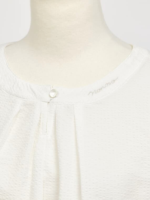 ※衿ぐりヨーク切替、前中心に釦1ケあき