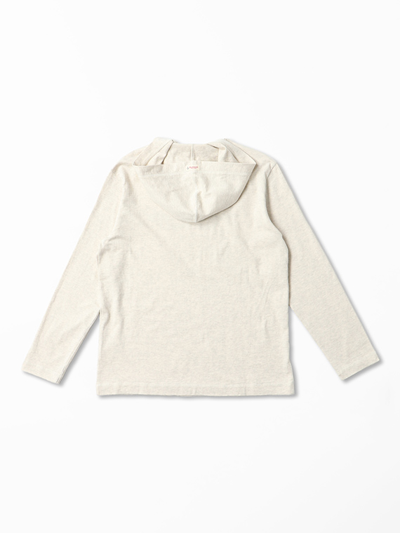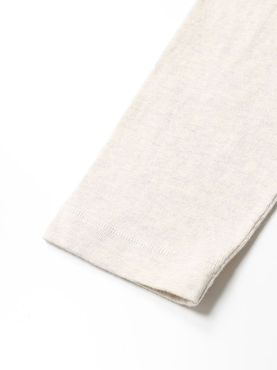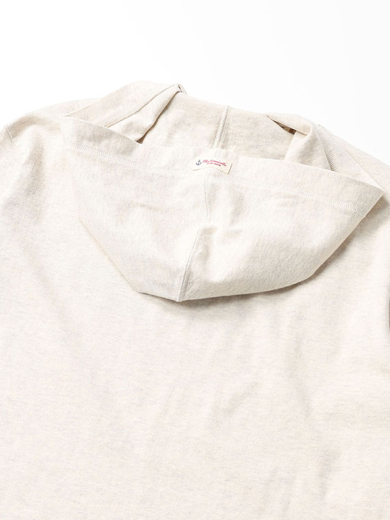 30/-の糸を撚り合わせ目を詰めて編みあげられた天竺です。密度を詰めて編み立てる事で編み目がきれいに揃いコシがありつつ優しい風合いに仕上げています。トレーナーとTシャツの中間アイテムを作るのに適した生地です。