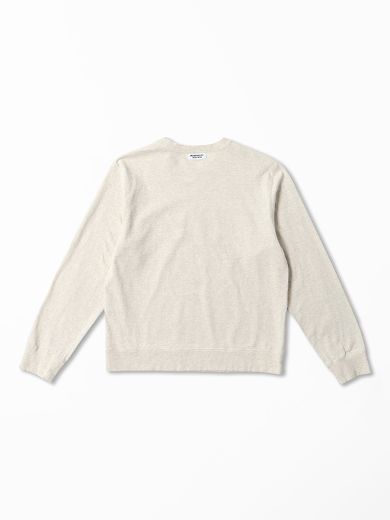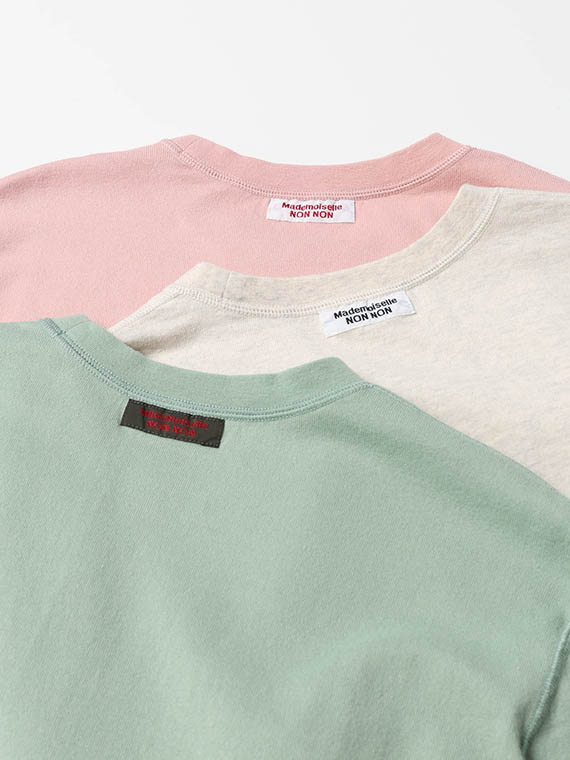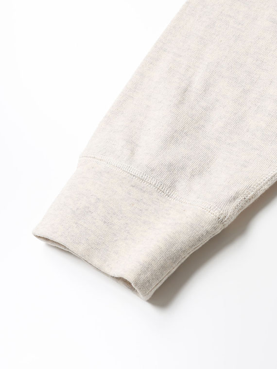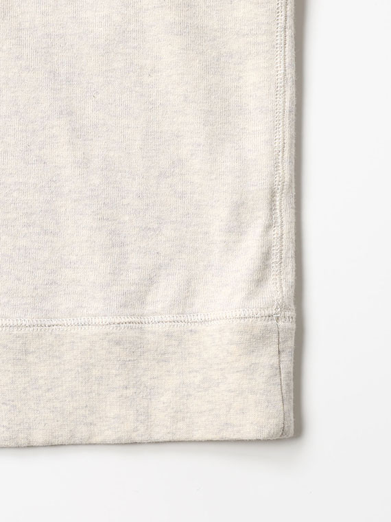 30/-の糸を撚り合わせ目を詰めて編みあげられた天竺です。密度を詰めて編み立てる事で編み目がきれいに揃いコシがありつつ優しい風合いに仕上げています。トレーナーとTシャツの中間アイテムを作るのに適した生地です。