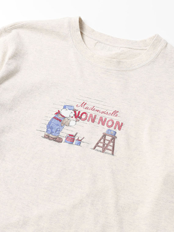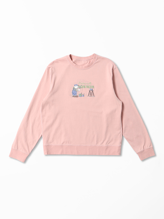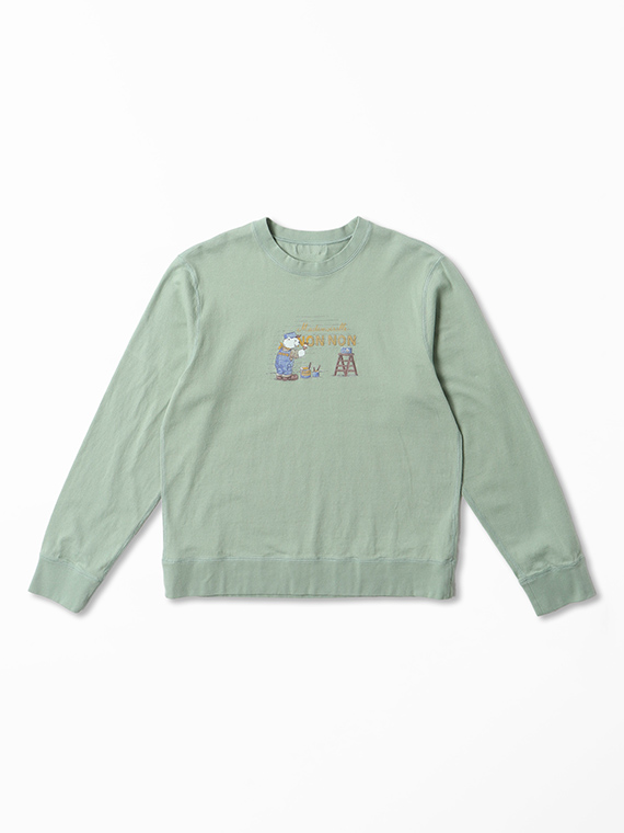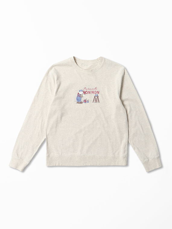 クルーネック・長袖のベーシックなデザインに、前身頃のペイントくま1色プリントが映える一枚です。