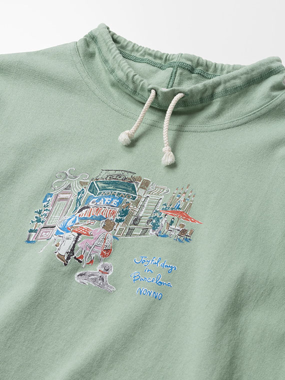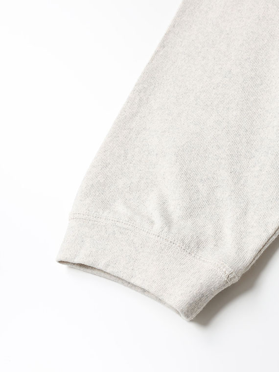 26/2のBD糸を使用した度詰め天竺です。空気を含ませながら紡績した糸を使用しているためボリュームがありながらもドライタッチの風合いが特徴です。原綿は米綿を使用しており古きよきアメリカのヴィンテージ感を表現した素材です。