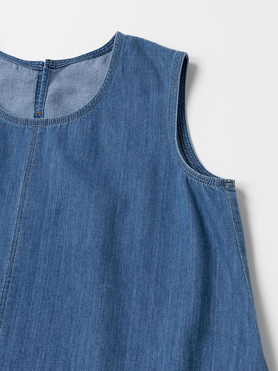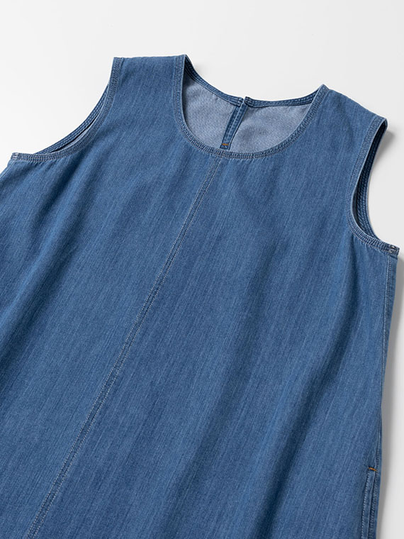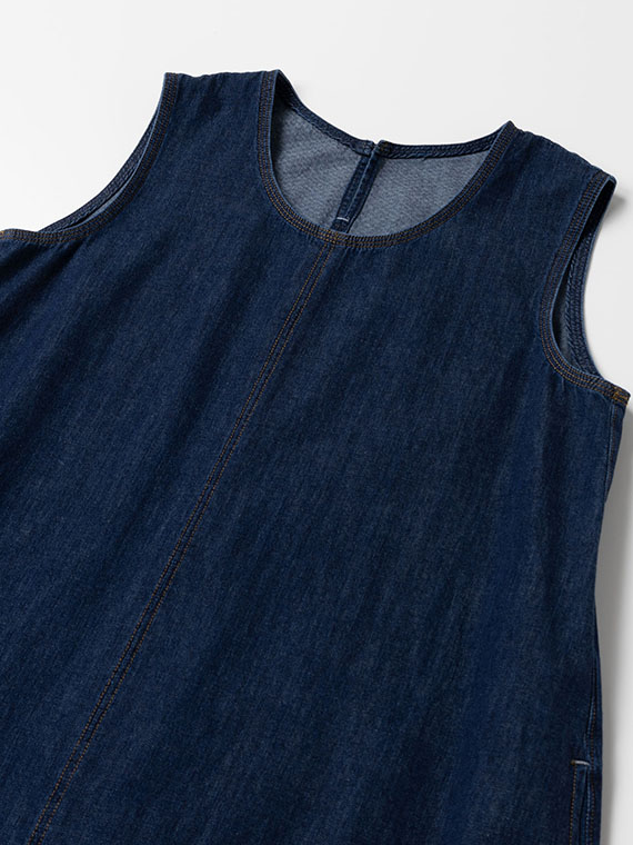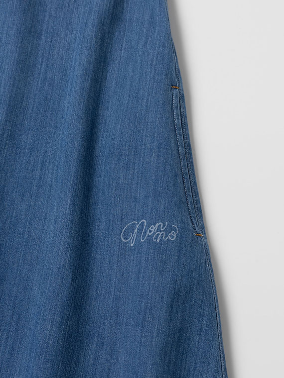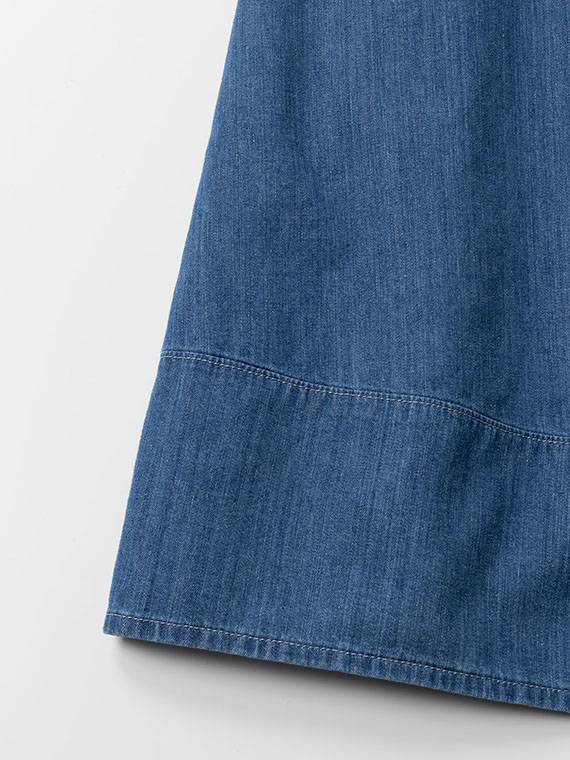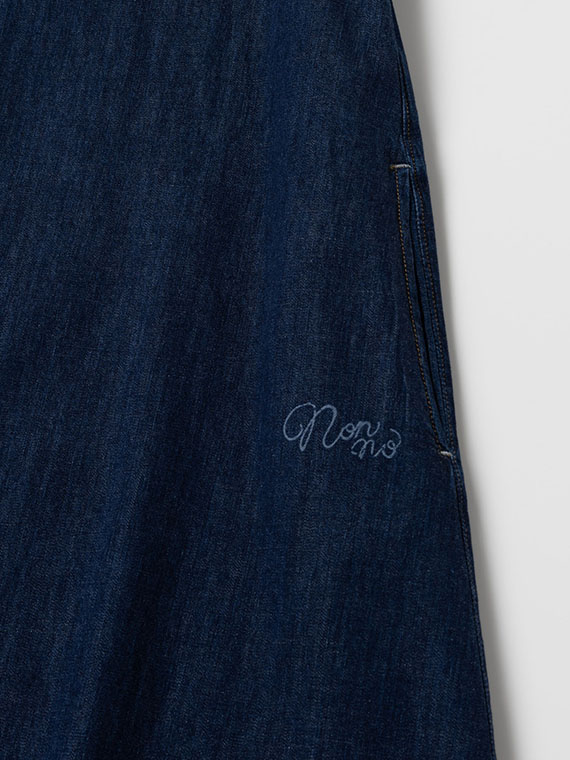 軽くて柔らかなリングオールドデニムを使用し、たっぷりとした分量感がありながらも重さを感じにくい着心地。切り替え下の脇線は直線にすることで、お直しのしやすさにも配慮しています。バイオウォッシュ加工による濃インディゴ・淡インディゴの2色展開。