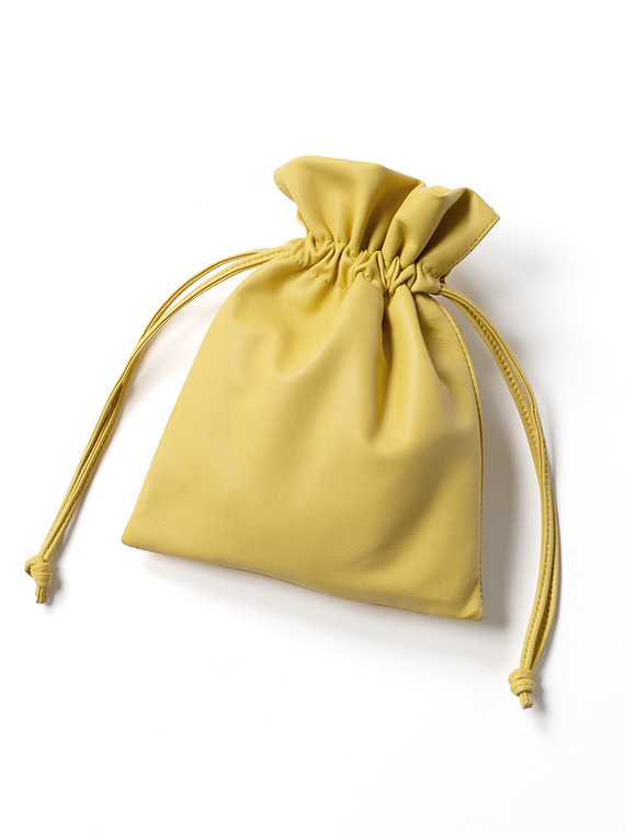 残革を使用したサスティナブルな取り組みから生まれた一品です。ころんとしたフォルムと上質な素材感が、さりげない存在感を演出。