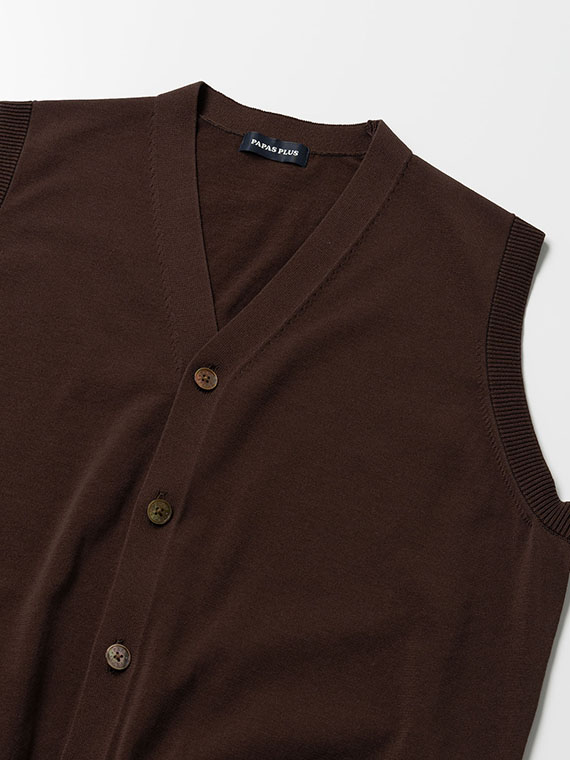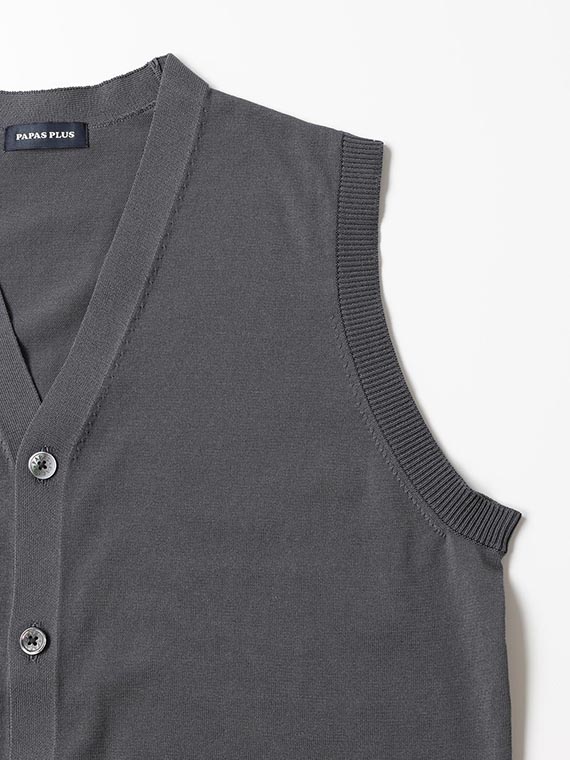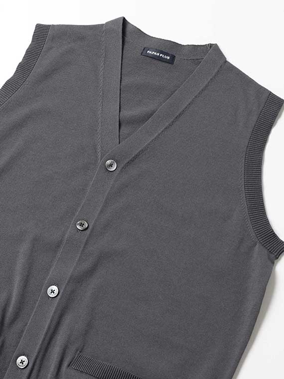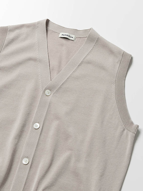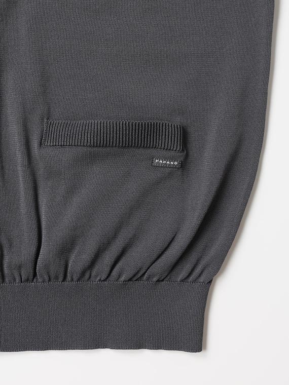 フロントはすっきりとしたデザインで、腰ポケットを備え、左ポケット下にはさりげなくピスネームをあしらい、程よいアクセントを加えています。重ね着もしやすく、幅広くお召しいただけます。