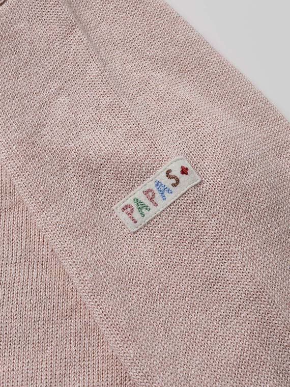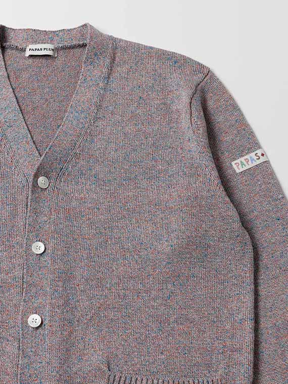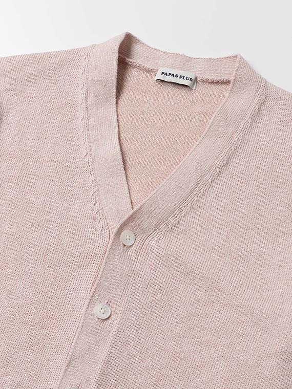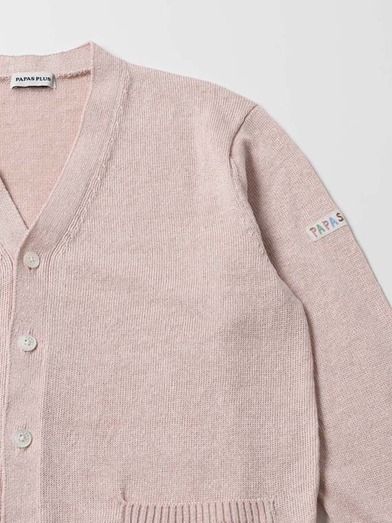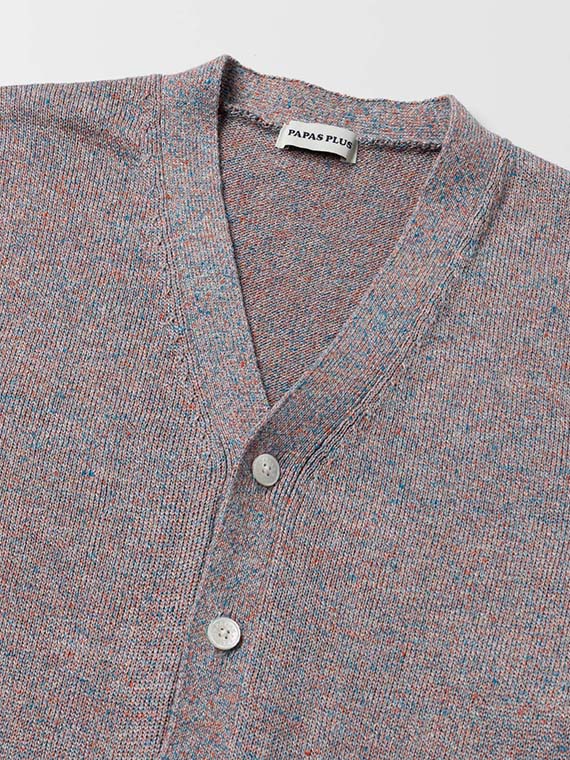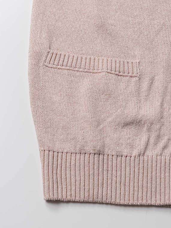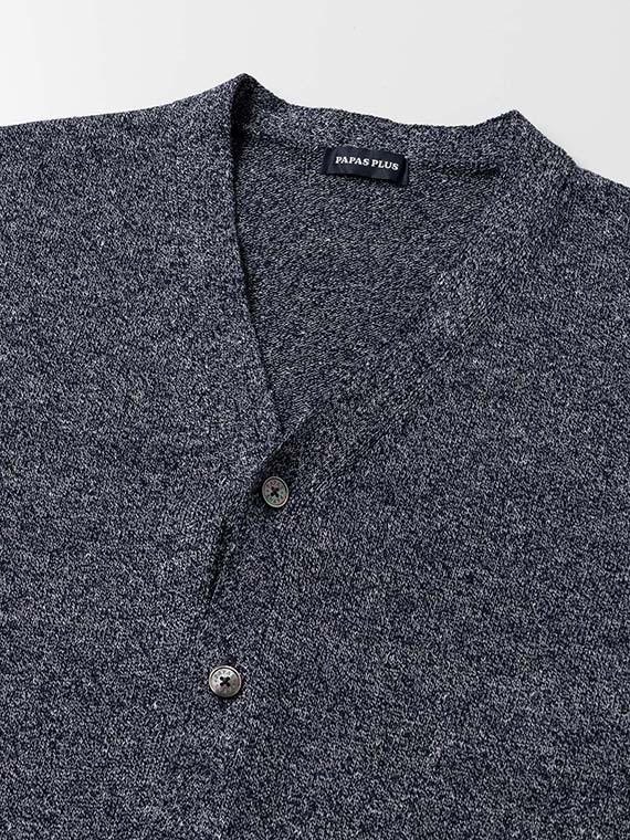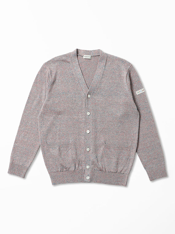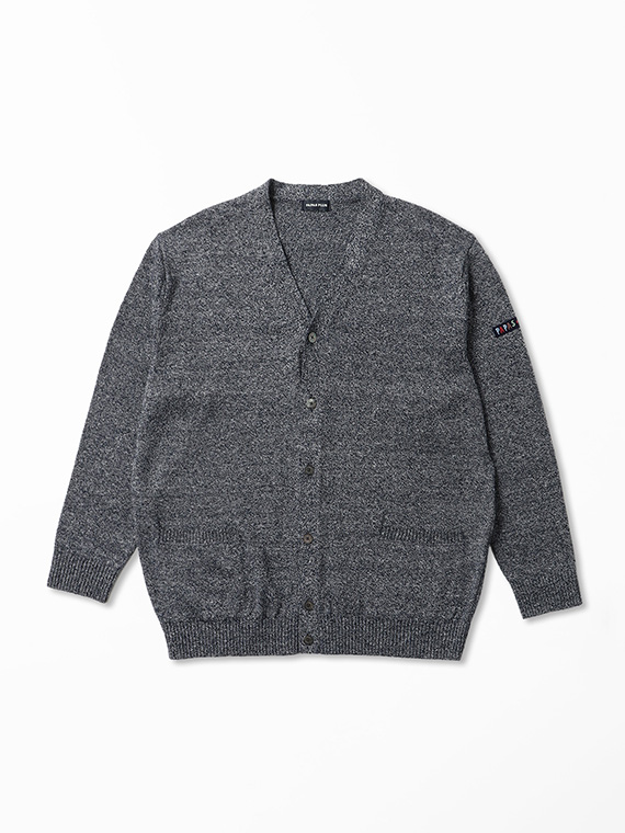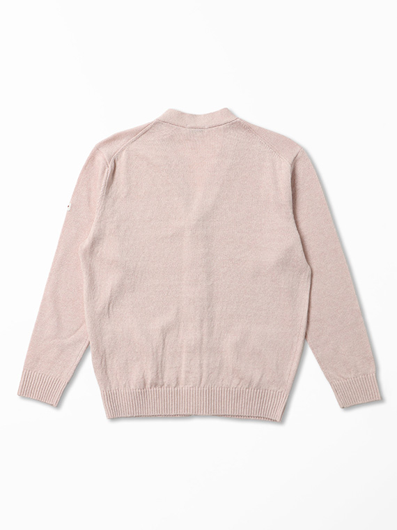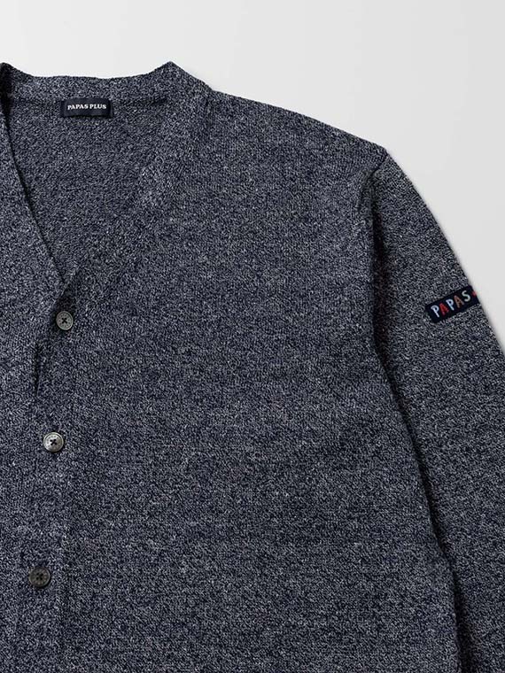 すっきりとしたVあきネックにフロント釦あきを合わせ、軽く羽織れる一着に仕上げています。腰ポケットを備え、実用性もさりげなくプラス。左袖にはワッペンをあしらい、シンプルな中に程よいアクセントを効かせています。