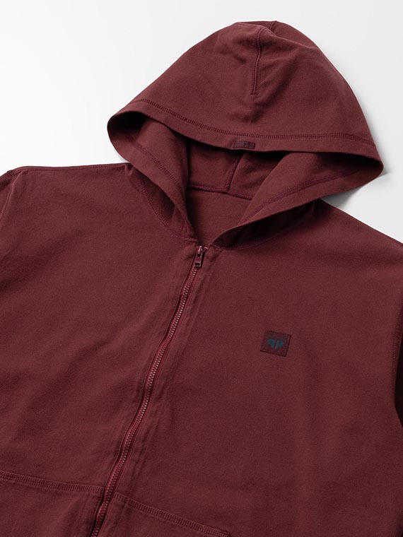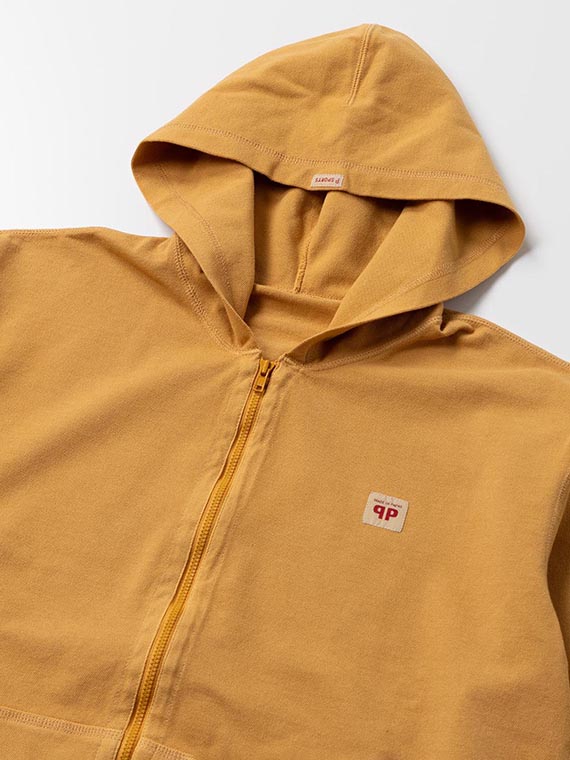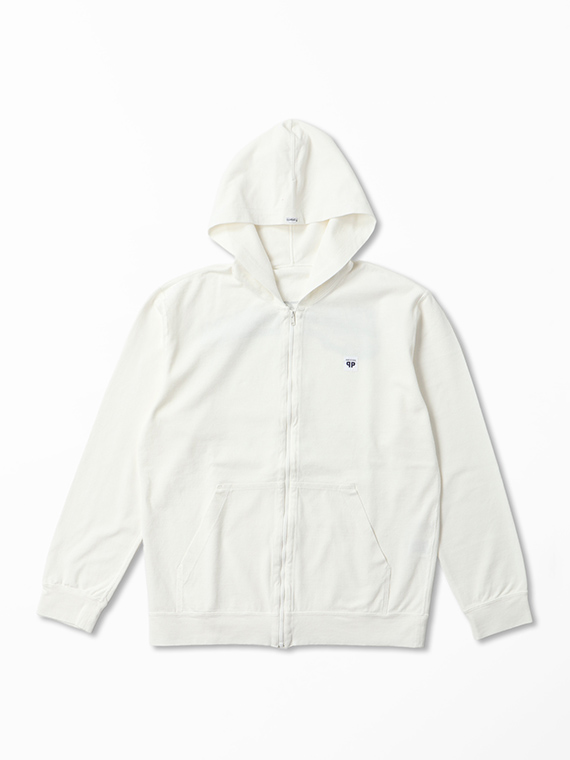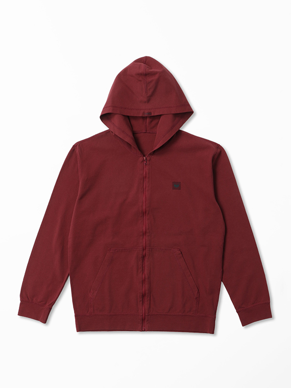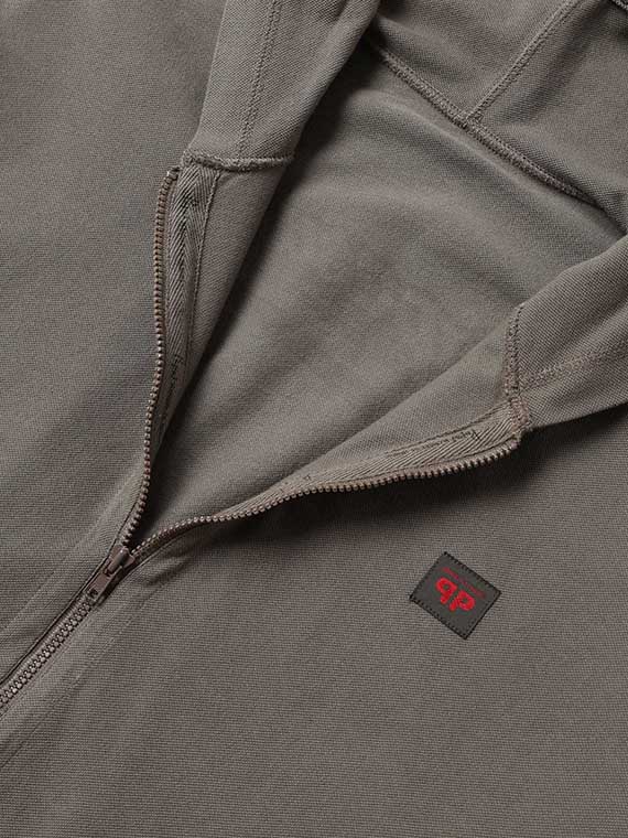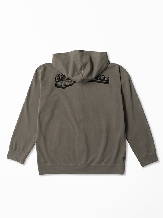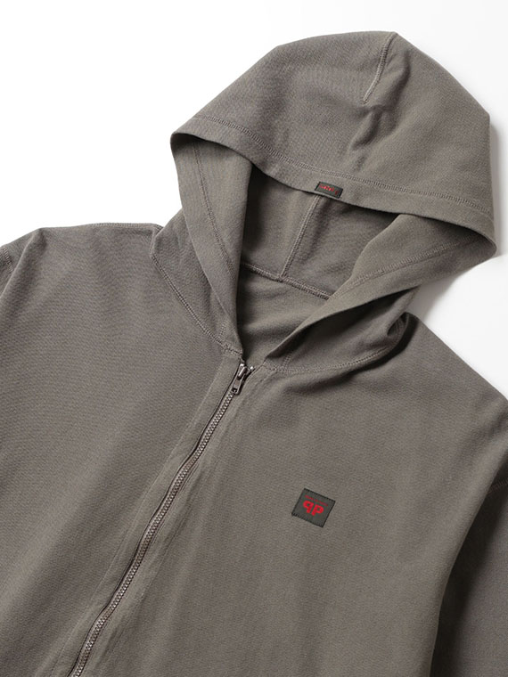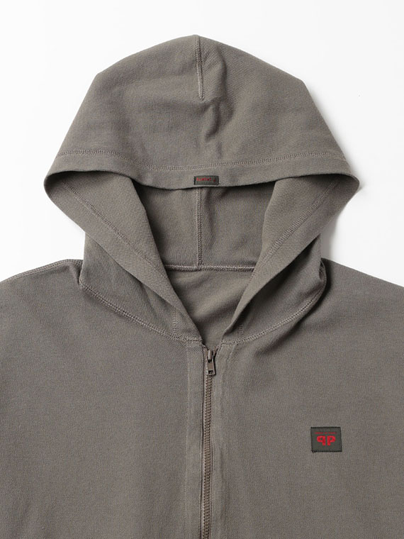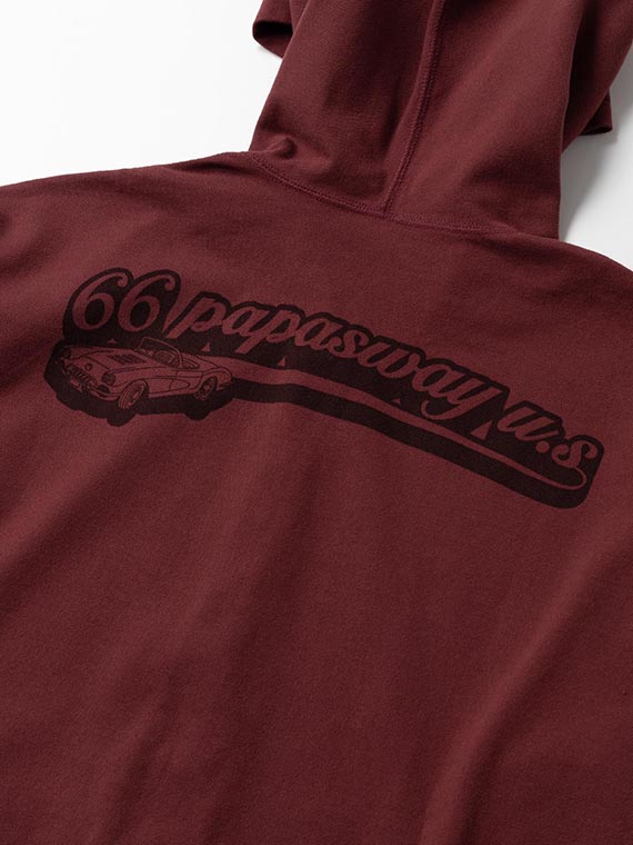 素材には50/2鹿の子生地を用い、製品の状態で中白染め加工を施しています。中白染めはカチオン化した生地に綿の反応染め&洗いを施す染色方法です。生地に洗いと染色を行うことで、表面に自然なムラ感とほどよいあたりを生み出すのが特徴です。洗濯を重ねるごとに、少しずつ変化する色合いも楽しめ、長く着るほどに味わいが深まります。また、プリントの上から製品染めを行っているため、色なじみが良く、落ち着いた雰囲気のヴィンテージライクな仕上がりとなっています。