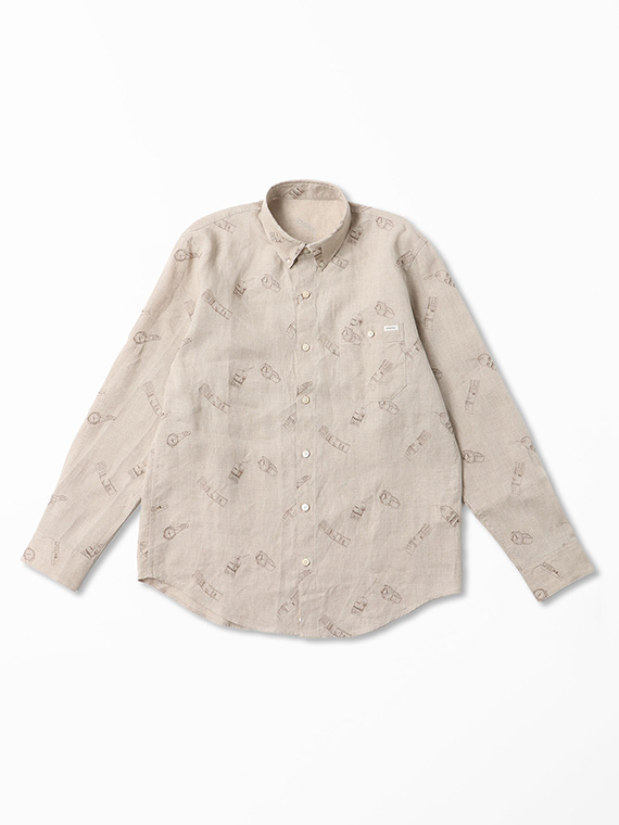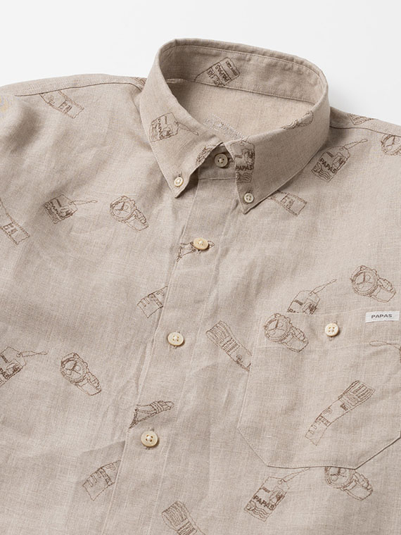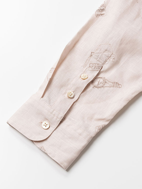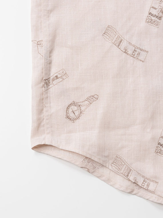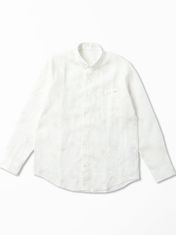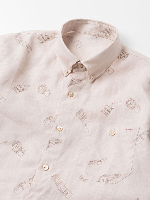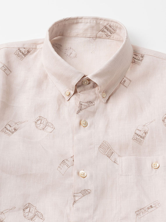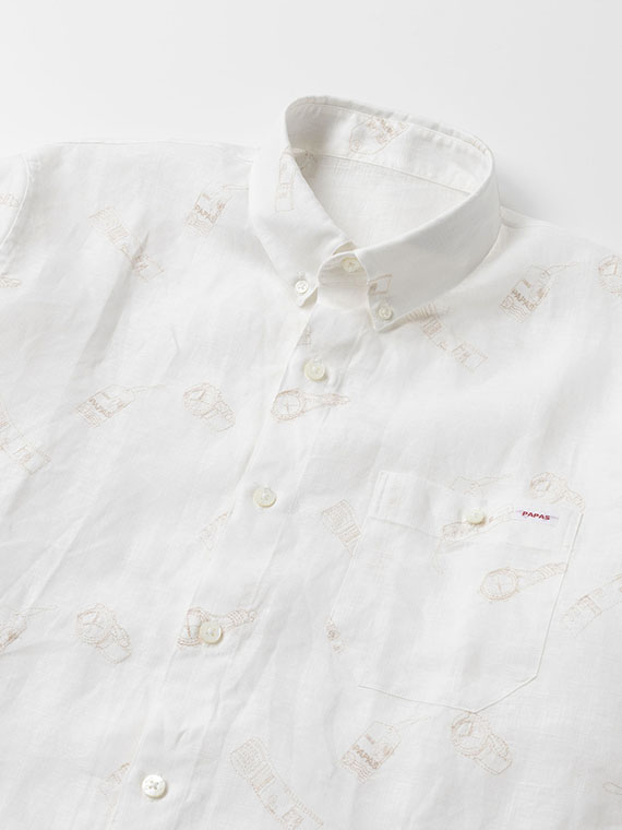 時計とタグをモチーフにした刺繍をあしらった、遊び心とPAPASらしい個性のある一枚です。台衿付きのボタンダウンにスリムFITを採用し、すっきりとしたシルエットに仕上げています。